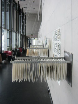 Installation.de 3 vestiaires d'images suspendus avec 90 gravures, processus d'effacement